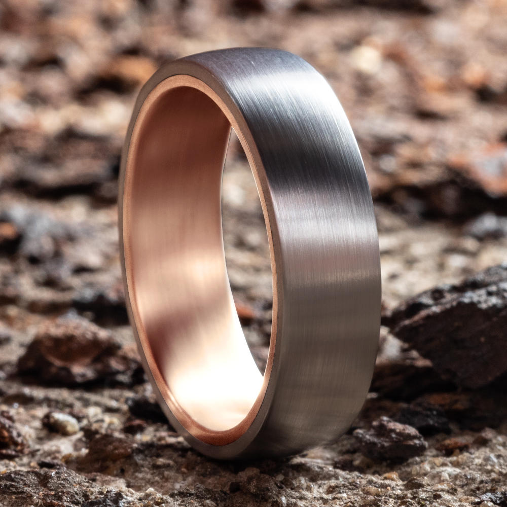6.5mm, Comfort fit 14K Rose Gold and Grey Tantalum Satin finish
