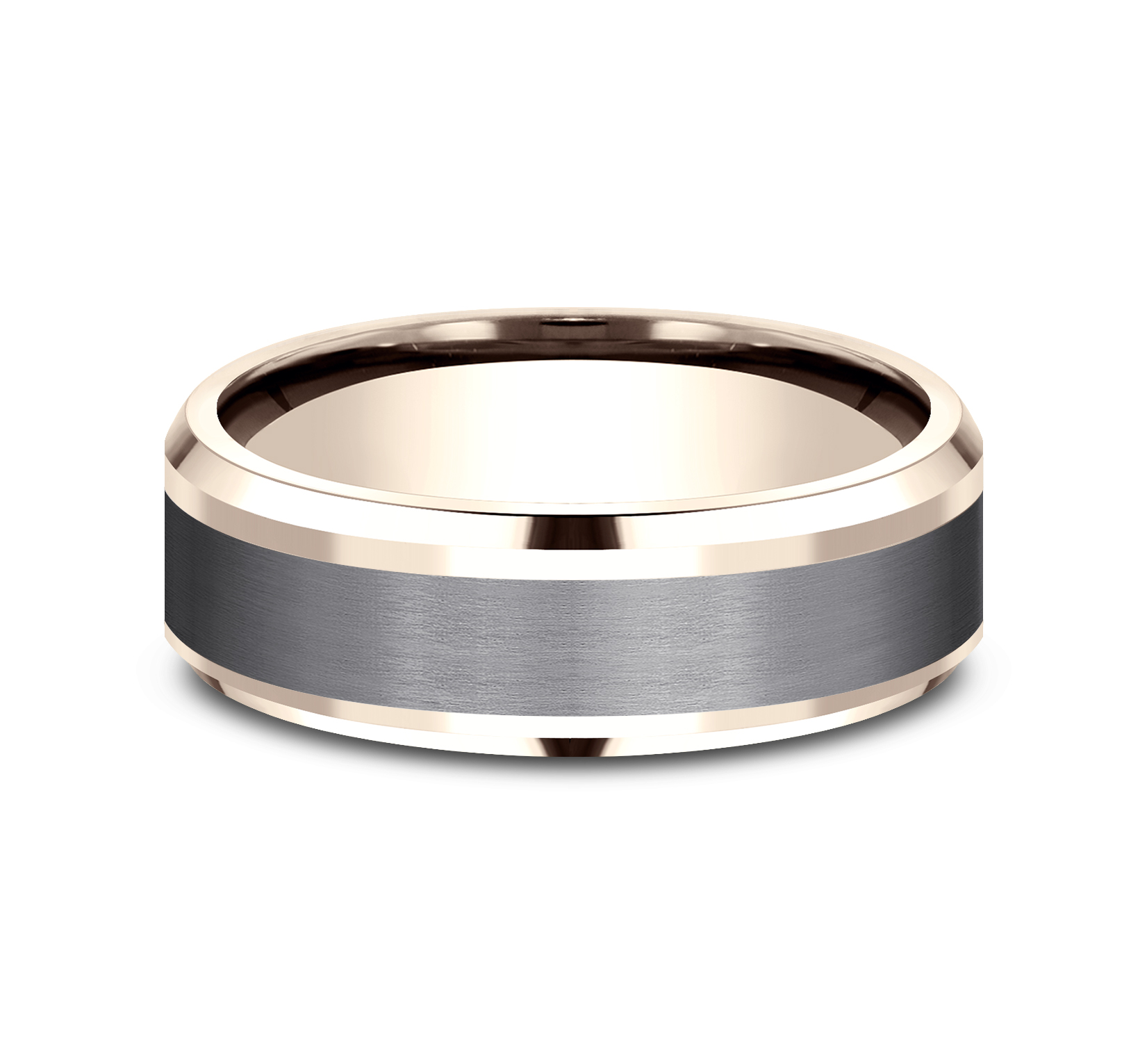 7mm, Comfort fit 14K Rose Gold and Grey Tantalum Satin center, polished bevel edges