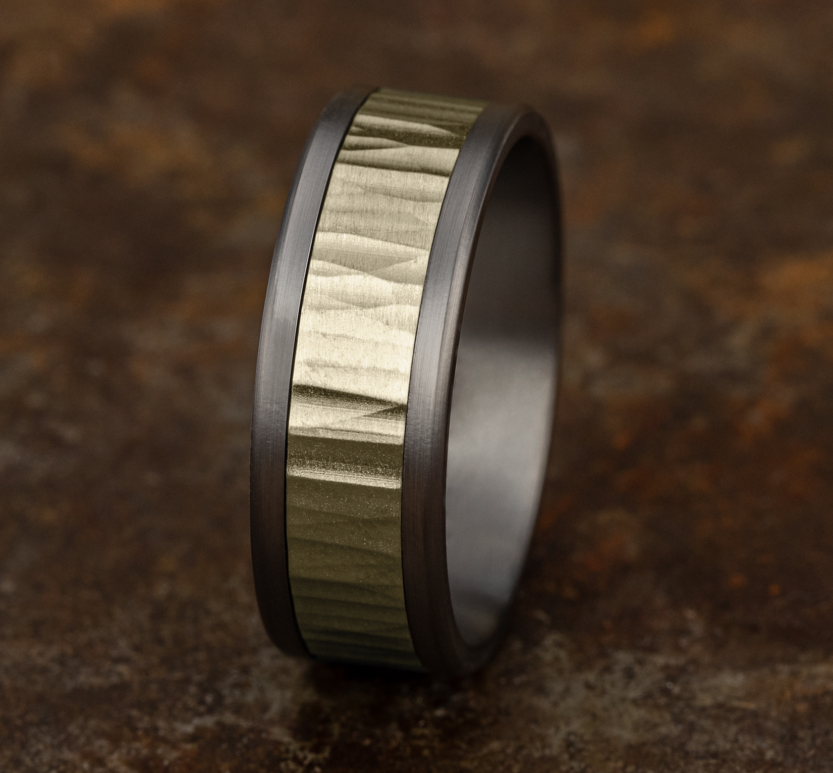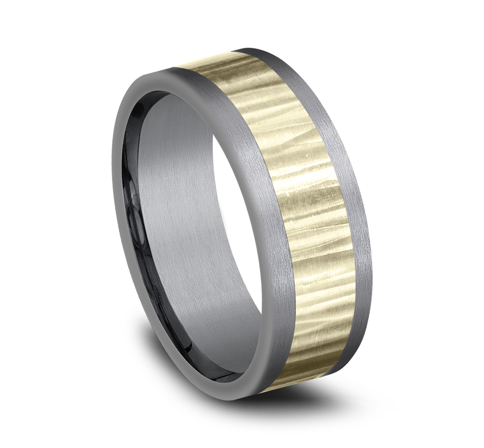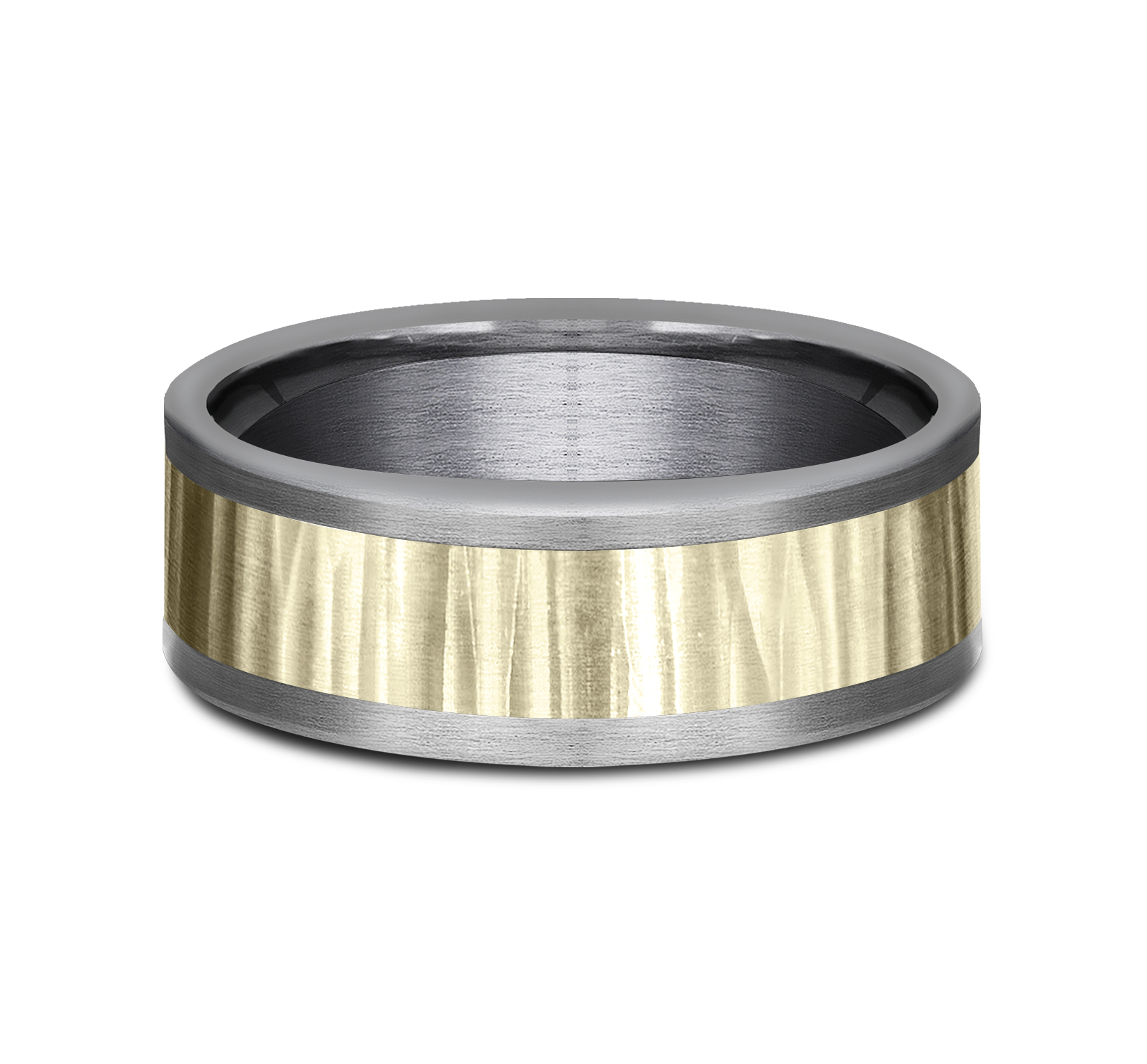 8mm, Comfort fit Grey Tantalum and 14K Yellow Gold Vertical hammered finish, straight edges