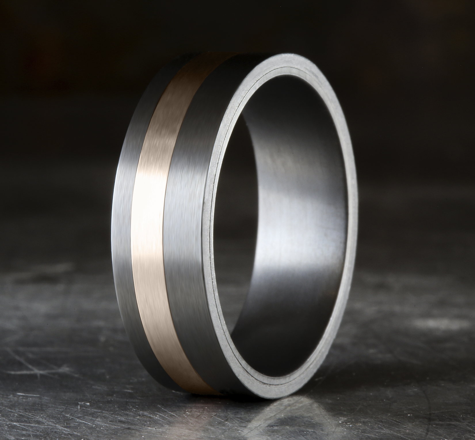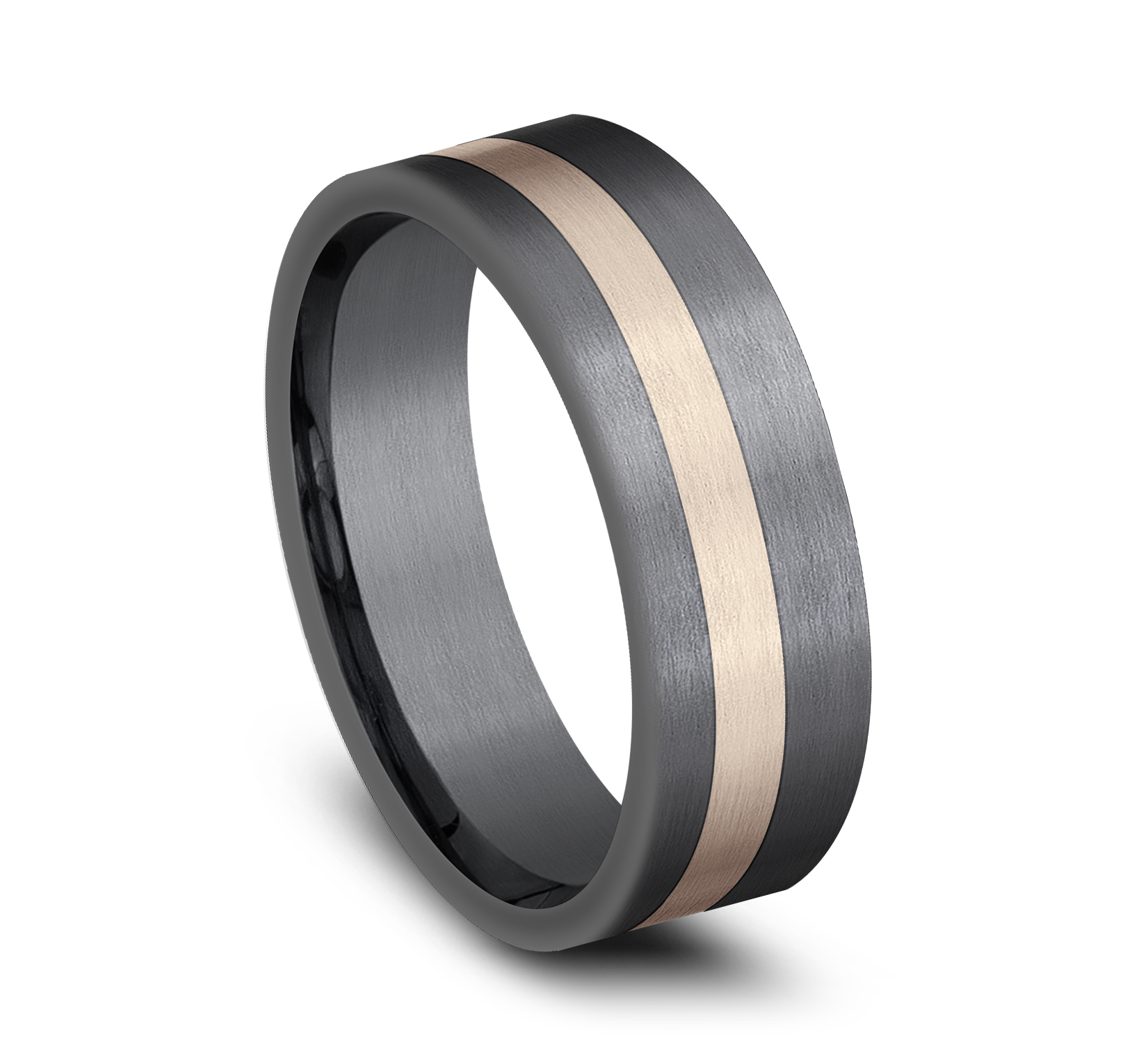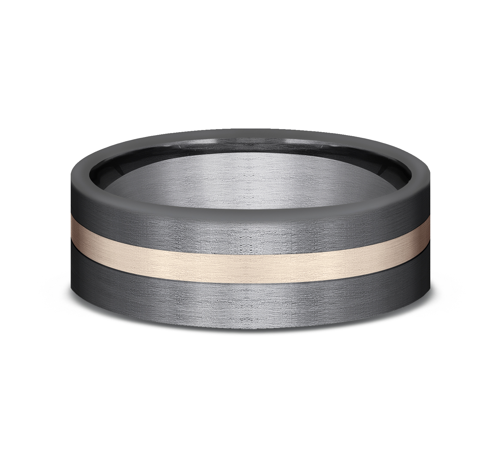 7mm Darkened Tantalum and 14K Rose Gold Satin finish with an offset stripe