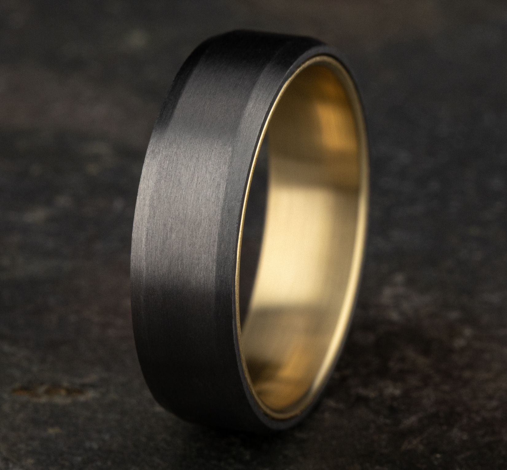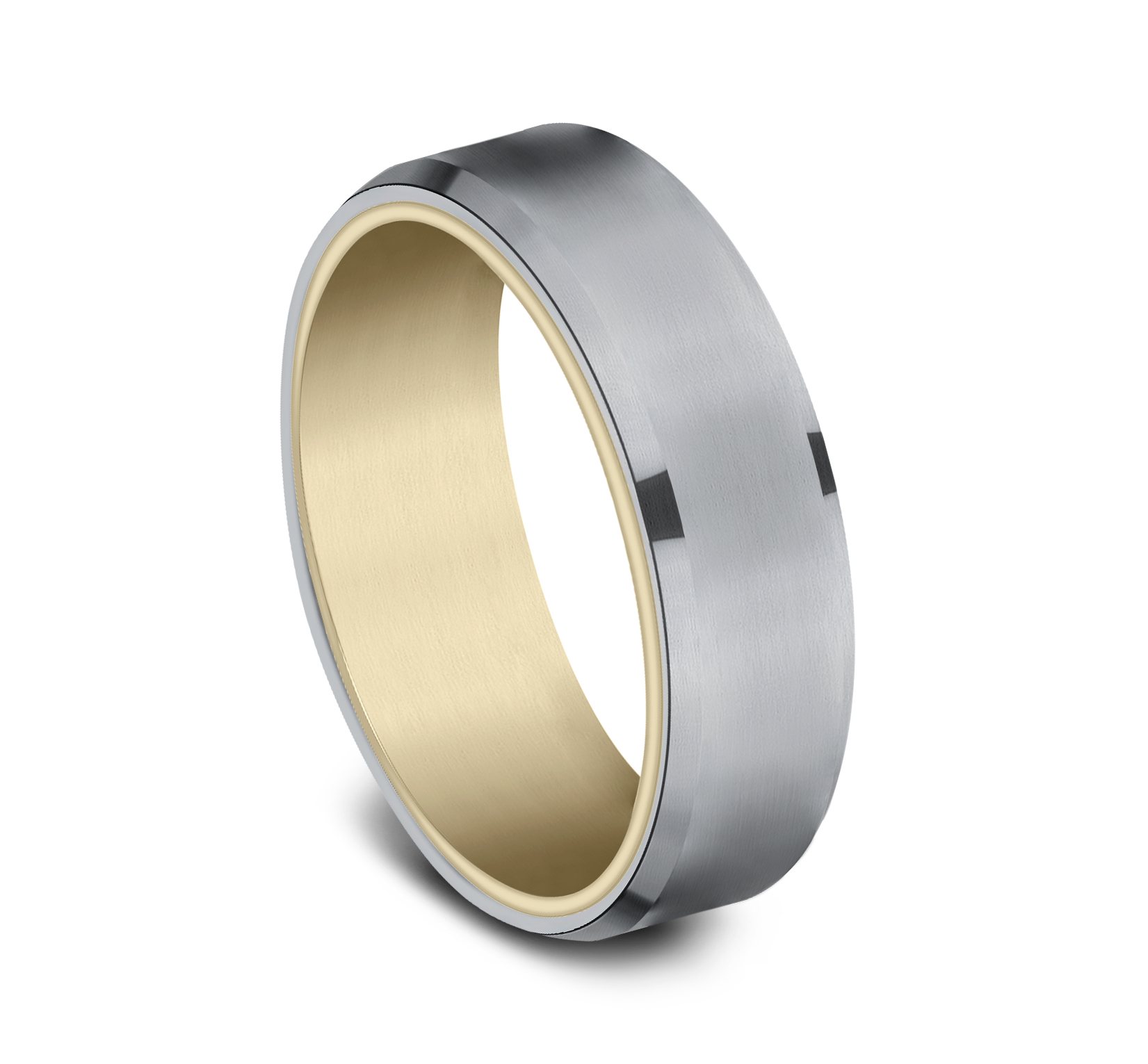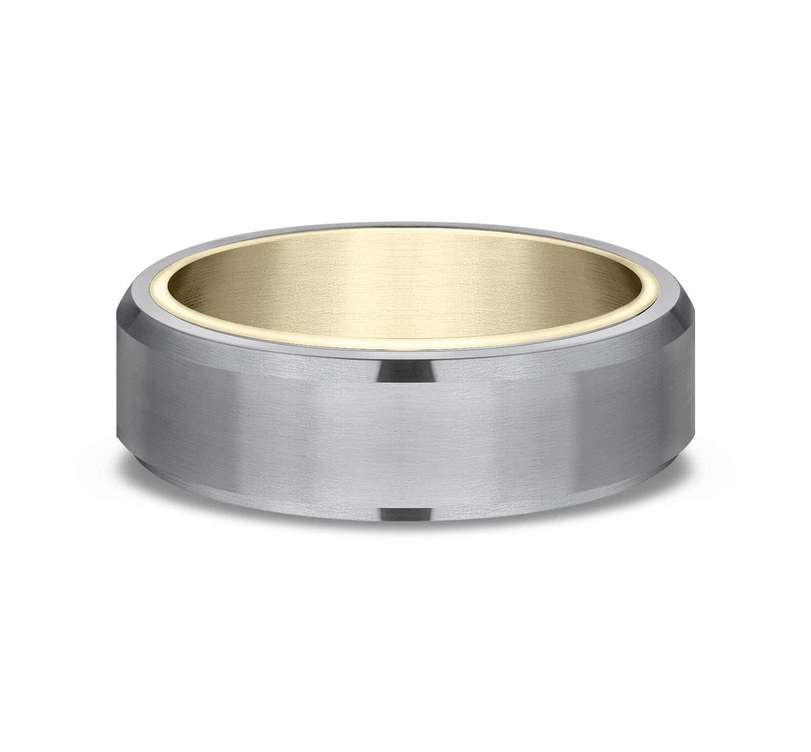 6.5mm, Comfort fit 14K Yellow Gold and Grey Tantalum Satin finish, slightly beveled edges