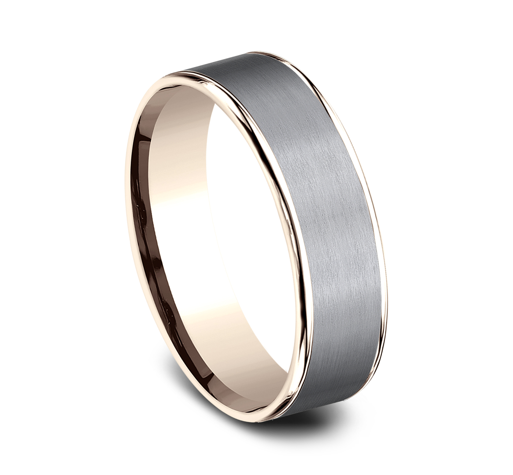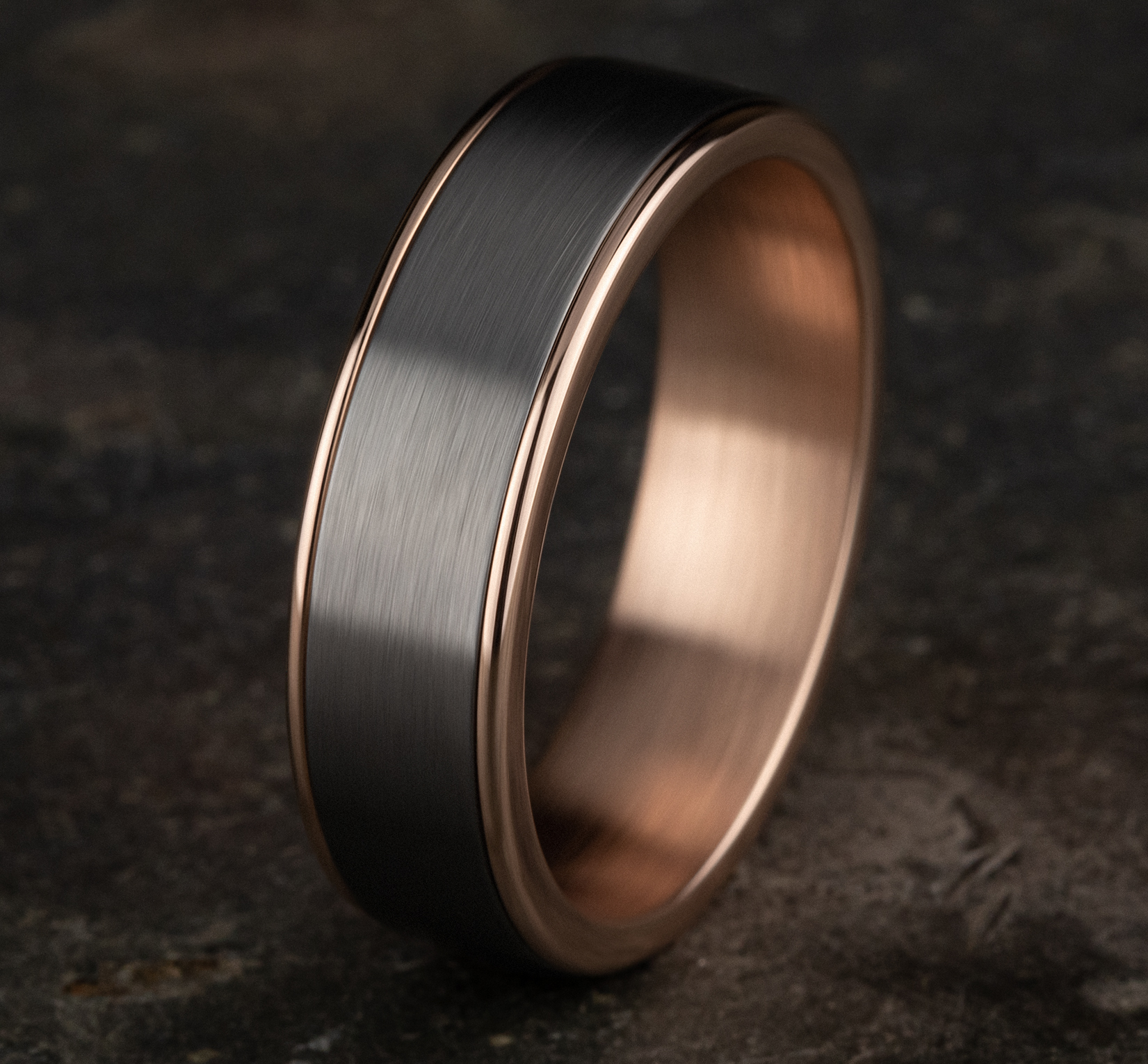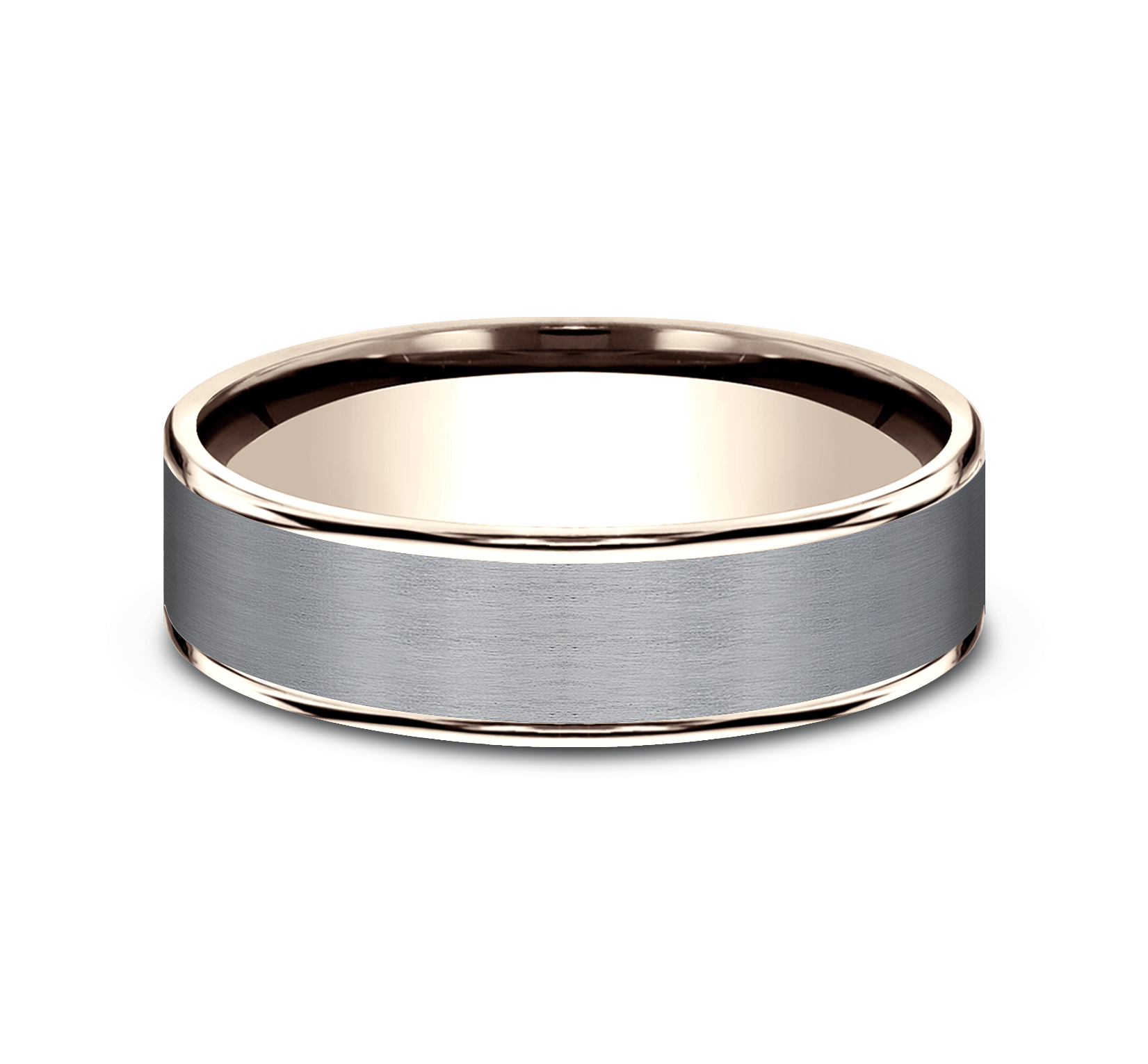 6.5mm, Comfort fit 14K Rose Gold and Grey Tantalum Satin center, polished thin edges