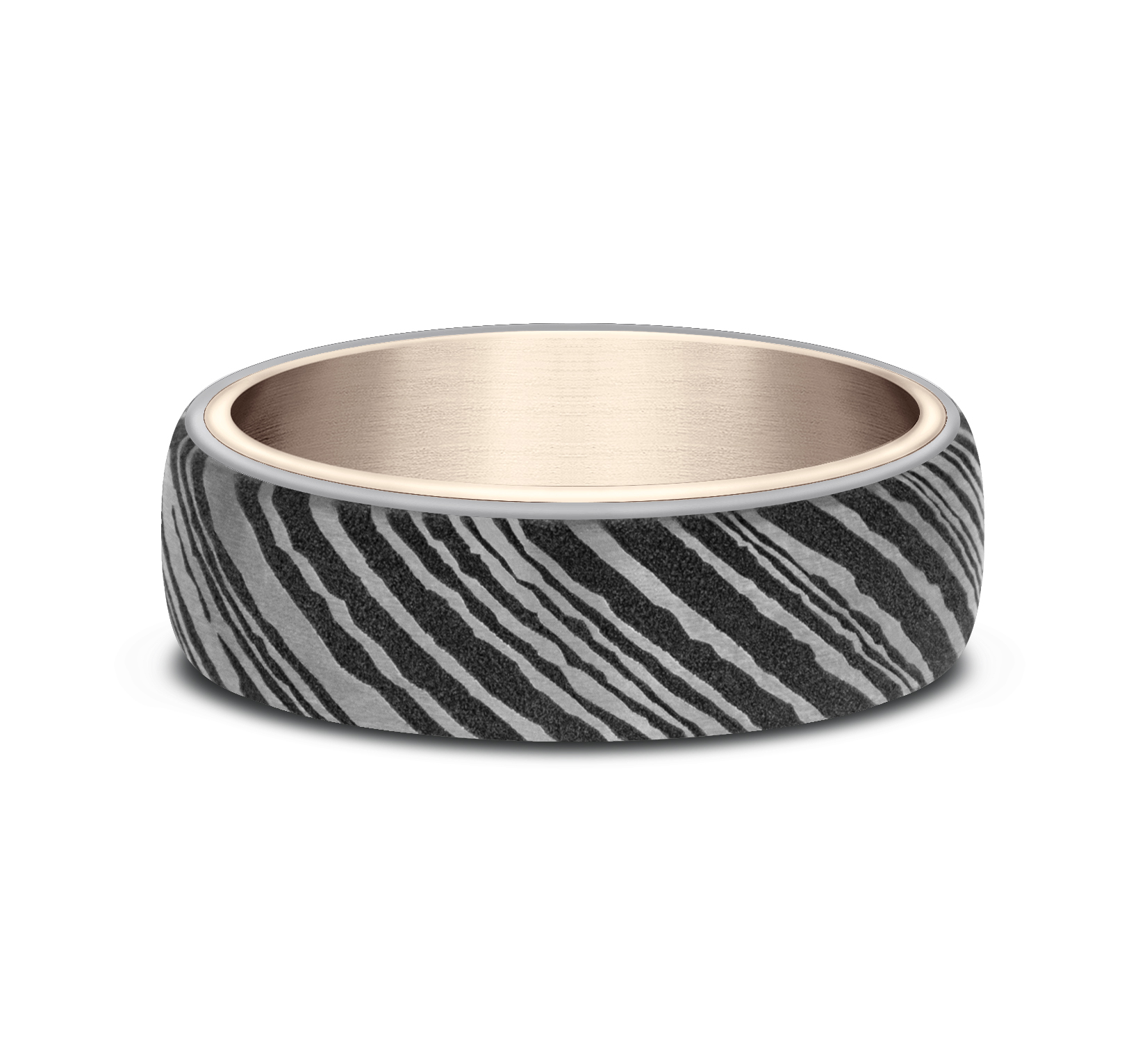 6.5mm, Comfort fit 14K Rose Gold and Grey Tantalum Unique Tamascus design
